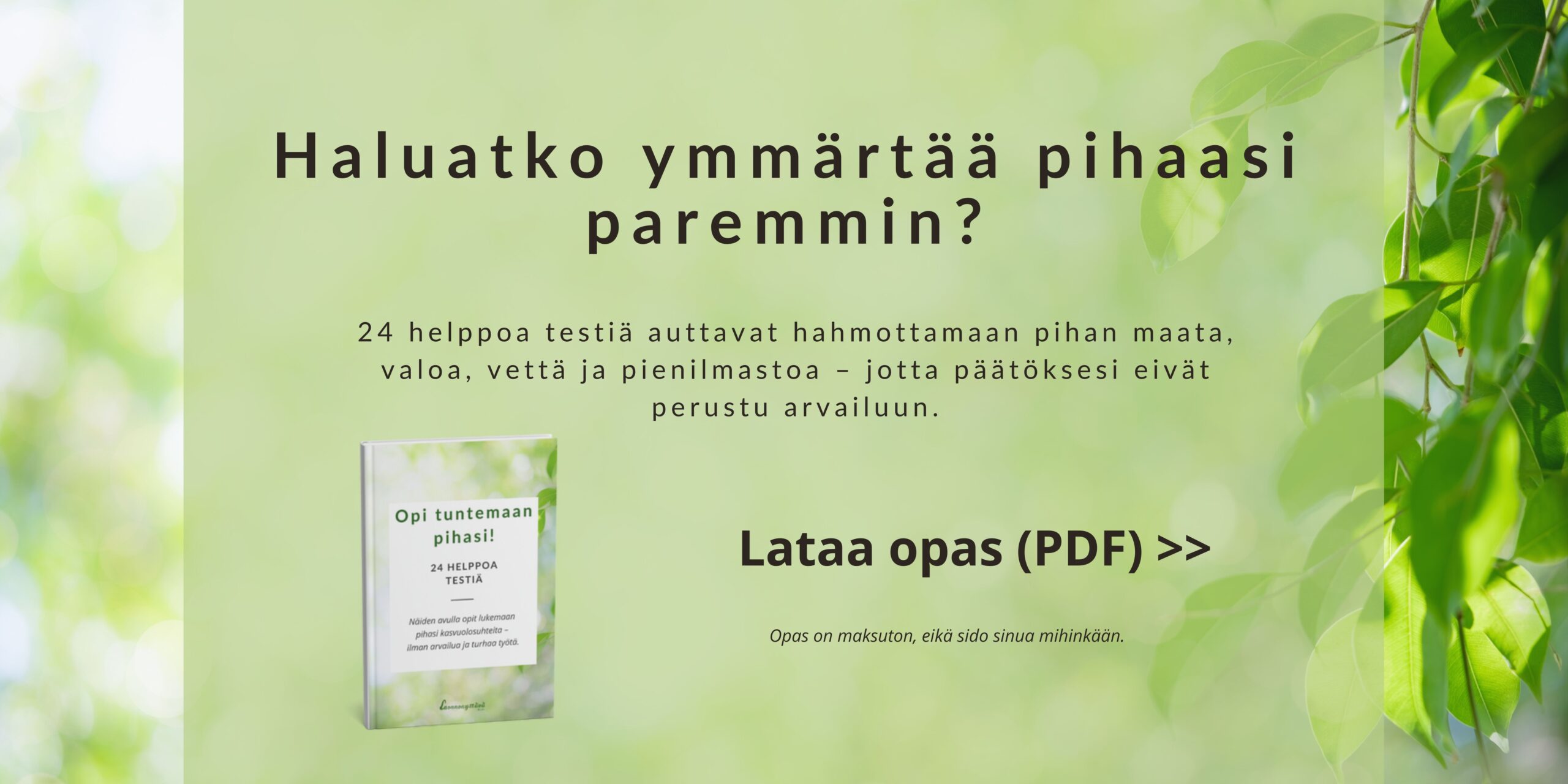 - Helppous syntyy ymmärryksestä, ei työn määrästäMoni haaveilee helppohoitoisesta pihasta. Sellaisesta, joka ei vaadi jatkuvaa kitkemistä, paikkaamista tai uusien ongelmien ratkomista. Helppous ymmärretään helposti niin, että pitäisi vain tehdä vähemmän. Eli jättää asioita tekemättä ja antaa luonnon hoitaa loput. Todellisuus on harvoin näin yksinkertainen. Helppohoitoinen piha ei synny siitä, että luovutaan tekemisestä. Päinvastoin: tekemättömyys voi siirtää ongelmia eteenpäin, ja ne palaavat…