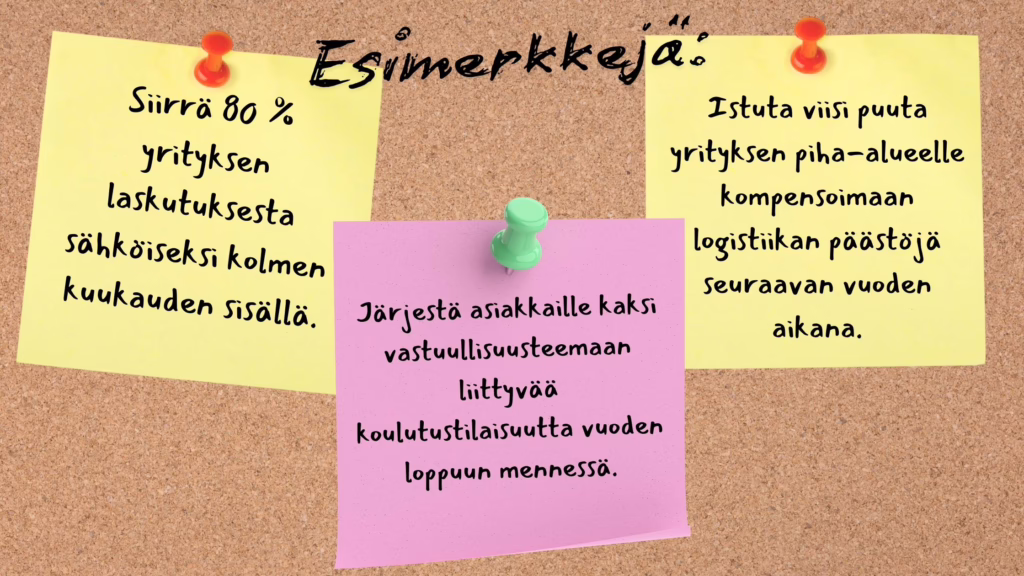 Vaikka pienen yrityksen resurssit voivat olla rajalliset, on silti aivan mahdollista asettaa realistisia ja merkityksellisiä vastuullisuustavoitteita, jotka tukevat niin liiketoimintaa kuin ympäristöäkin.