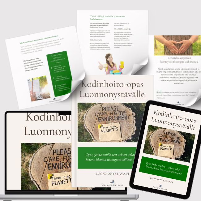 Tämä PDF-muodossa oleva selkeä opas auttaa sinua miettimään kotisi valintoja luonnon kannalta ja tekemään luontoystävällisempiä valintoja arjessasi: