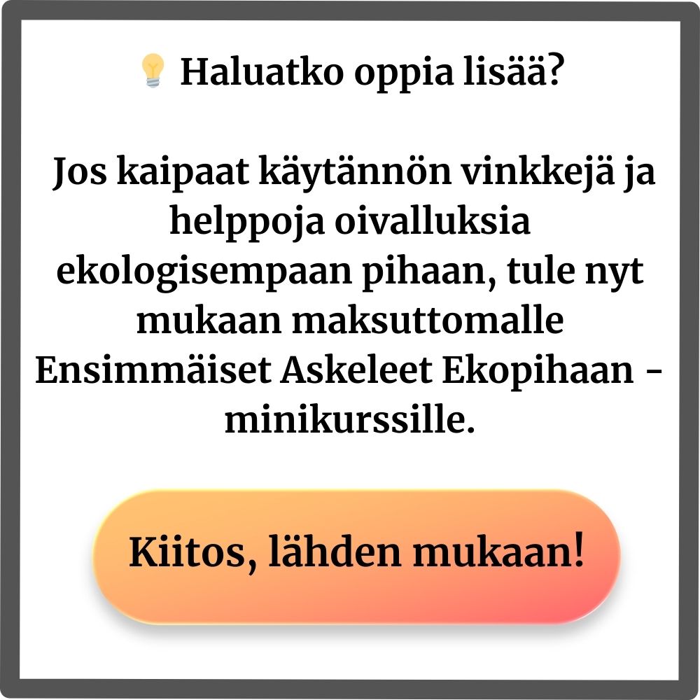 👉 Haluatko vähemmän kitkemistä ja enemmän iloa puutarhasta? Tule mukaan MAKSUTTOMALLE Ensimmäiset Askeleet Ekopihaan minikurssille